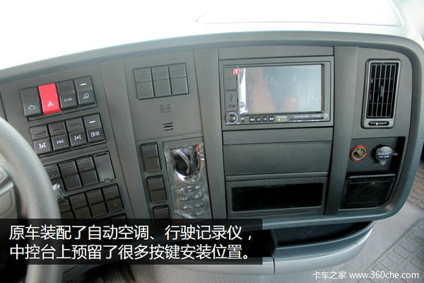 相对与其他版本的驾驶室,该款车型的驾驶室里面的布局基本一致,增设了SOS紧急按键、燃油加油开关等等,全部设置在中控台的左侧,触手可及。