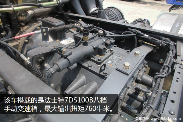 该车搭载的是法士特7DS100B七档手动变速箱,最大输入扭矩1000牛米。
