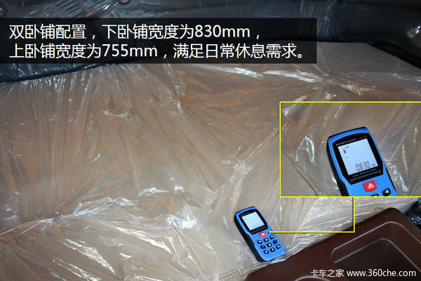本车为双卧铺配置,下卧铺最外围宽度可达到830mm,上铺宽度755mm,满足日常休息需求。同时卧铺下面还设有储物格,方便存放物品。