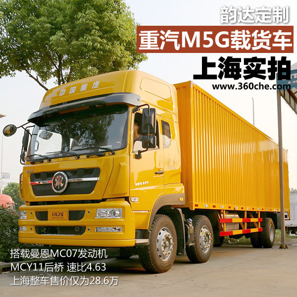 来卡车之家App【卡车之家 原创】2015年中国重汽商用车公司发展战略主推曼技术产品,甚至包括斯太尔旗下M5G、D7B和金王子等车型。其中M5G作为中国重汽商用车公司2015年最新推出车型,是一款融合了曼恩技术同时定位于中高端重卡市场的产品。M5G车系涵盖自卸、载货、牵引、专用等各领域,近日小编走访中国重汽上海时代天成汽车销售有限公司,实拍的M5G 6x2载货车搭载了目前重汽最新的MC07发动机,是一款极具竞争优势的载货车产品,据了解这款M5G 6x2载货车的整车报价为28.6万元。