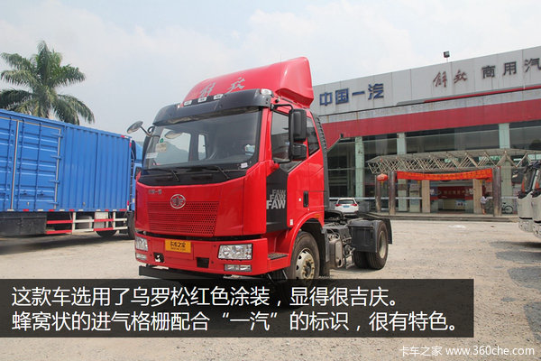 来卡车之家App【卡车之家 原创】这几年港口物流的发展态势向好,货运量增加,用车量上扬。同时,港口城市的排放法规更严,原有的黄标车必然淘汰,这就让应用较多的牵引车迎来了“退黄换绿”、迭代升级的发展时期。在这种背景下,国内众多厂商纷纷推出自己的港口牵引车。近日,小编就在广州市运力汽车运输有限公司见到了一辆解放新推出的220马力J6L港口牵引车,这辆车在广州的底盘报价为17.2万元。