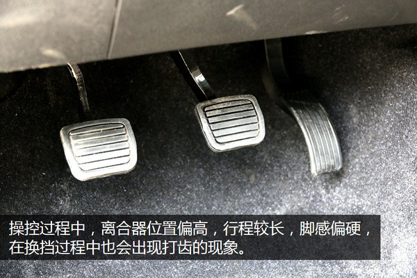 操控过程中,离合器位置偏高,行程较长,脚感偏硬,不习惯这辆车的驾驶员在换挡过程中也会出现打齿的现象,车辆会大幅振动,驾驶过程中出现这种情况会影响安全性,心情也会变得不美丽了。