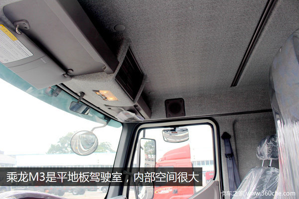 乘龙M3驾驶室采用平地板的设计,内部空间大。乘员的活动区域大,主副驾交换不用下车就能完成。