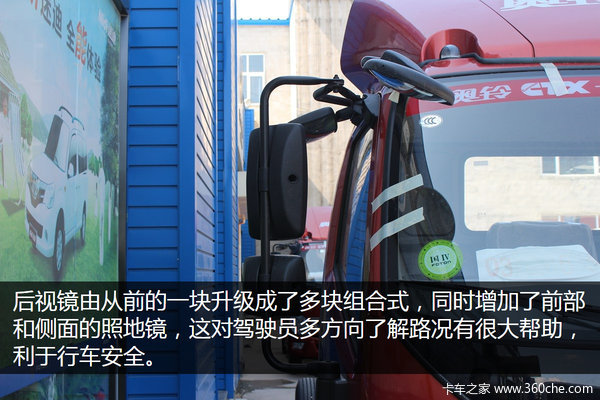 外观方面,奥铃科技版整体轮廓并没有太大变化,依然是大家所熟知的样子。后视镜由从前的一块升级成了多块组合式,同时增加了前部和侧面的照地镜,这对驾驶员多方向了解路况有很大帮助,利于行车安全。