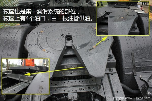 你要问我集中润滑可以给那些部位打黄油,那我只能说整车只要有黄油嘴的地方都可以(依维柯Stralis Hi-Way 500马力 6X2 牵引车传动轴没有黄油嘴),就拿前桥转向节主销来讲,每次打黄油这里最头疼的地方,每次都要趴在地方才能完成。
