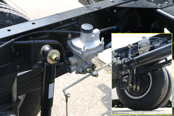这款车标配没有ABS,而是采用感载比例阀代替。感载阀的作用在于保证行驶过程中前后轮负荷的合适比例并确保在汽车紧急制动时后轮不抱死。