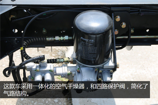 这款车采用一体化的空气干燥器和四路保护阀,简化了气路结构。