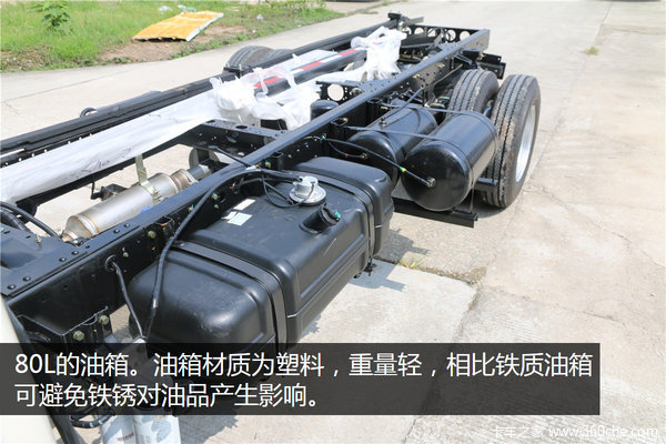 该车采用80L容量的塑料油箱,重量轻,相比铁质油箱可避免铁锈对油品产生影响。