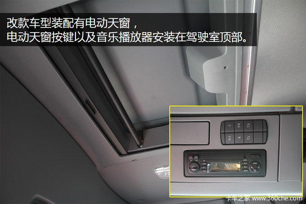 该车改配备了电动天窗,电动车窗的按键以及音乐播放器都被安装在了驾驶员顶部的位置。
