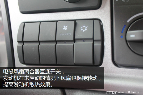 在中控台上有一个按键是控制发动机风扇开关的,ISG发动机装配的是电磁风扇离合器,在极端情况下打开直连开关,提高发动机的散热性能。