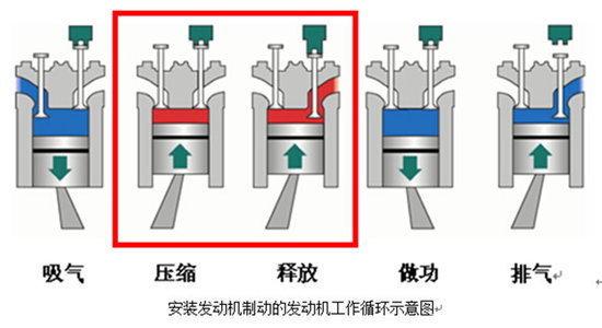 它共有两个档位,一档4缸工作,二档6缸全部工作,1档能达到最大功率的65%左右,可以根据工况选择对应档位,发动机的转速越高,发动机的制动功率就越大。