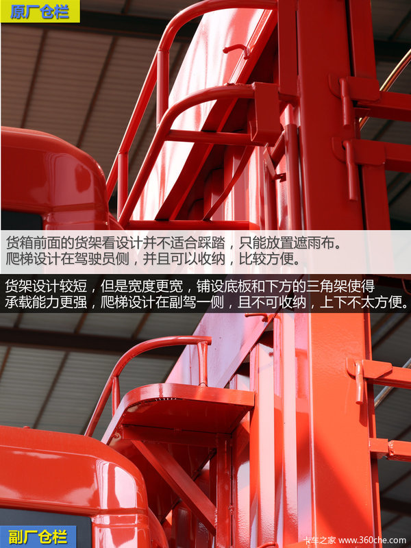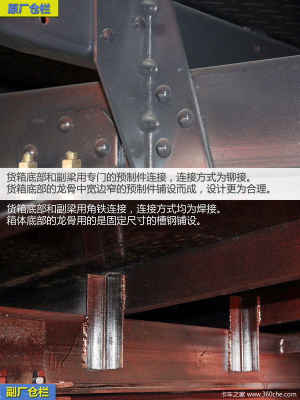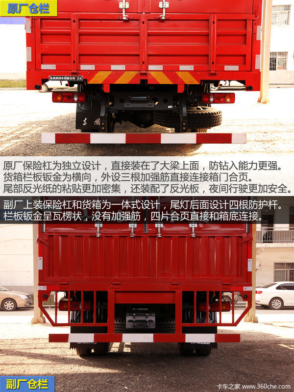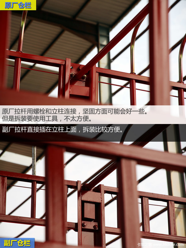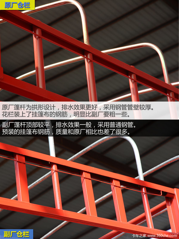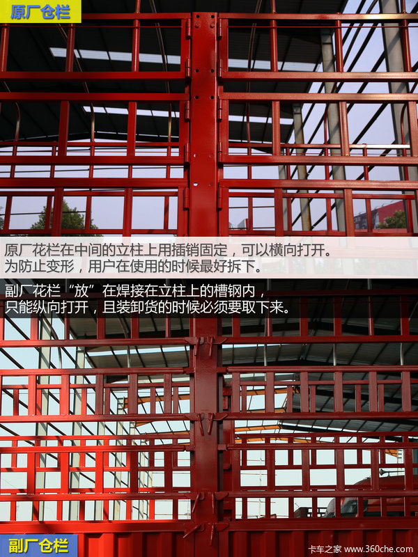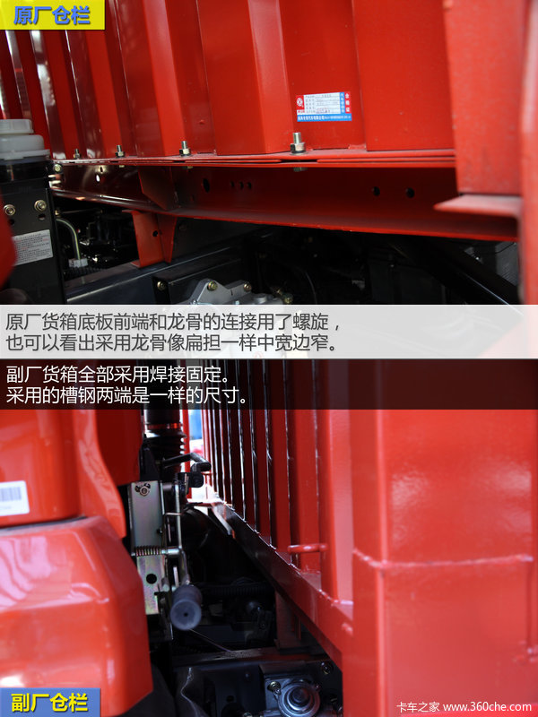 原厂货箱的做工和设计方面,可以说是无可挑剔,副厂车辆在这方面就做的有些不尽人意。然而在仓栏的自重和重心的设计上面,副厂货箱要优于原厂。当然,仓栏自重也是为了后期车辆承载性能以及货箱的耐用程度考虑。