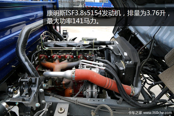 既然是国五车型,4.2米的江淮帅铃选择了技术成熟可靠的康明斯发动机ISF3.8s5141发动机,排量为3.8升。采用博世高压共轨技术,配合SCR技术,满足国五排放标准。最大功率141马力,在1200-2200rpm的转速区间内输出最大扭矩450Nm。搭配六安LC6T450M1变速箱,6个档位,合理分配动力。