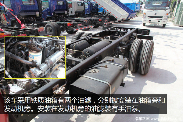 该车采用铁质油箱有两个油滤,分别被安装在油箱旁和发动机旁。安装在发动机旁的油滤装有手油泵。