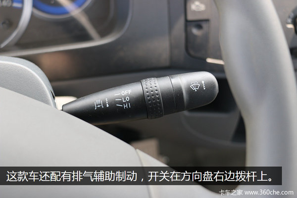 这款车还配有排气辅助制动,开关在方向盘右边拨杆上。排气制动的正确使用可大大减少行车制动(刹车)的使用,从而减少蹄片(或碟片)磨损,大大降低蹄片(或碟片)连续制动过热导致的行车安全风险。
