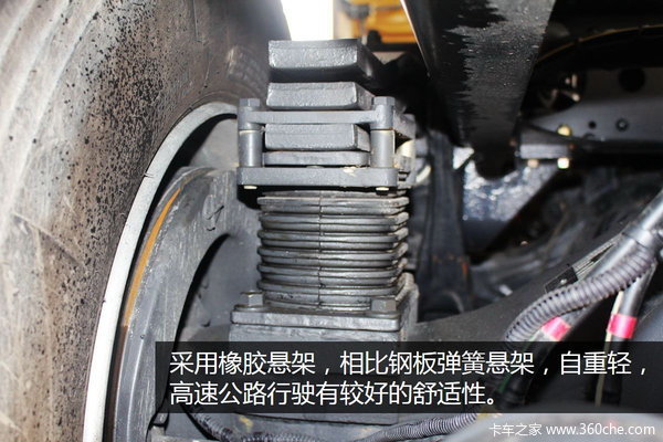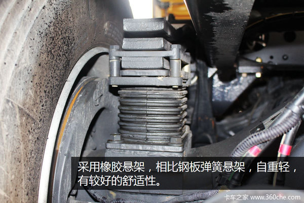 驾驶室减震采用四点悬浮气囊结构,能更好吸收行驶过程中的颠簸。