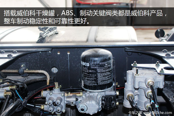 本车还搭载有5.5吨级457前桥,且前桥采用盘式制动,抗热衰退性较好,同时采用了伊顿Ф430进口拉式拉式离合器。