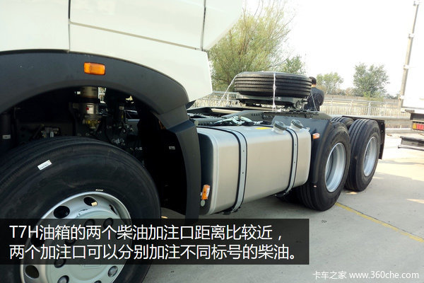 今日,卡车之家从中国重汽了解到,目前T7H和C7H都可以装配双腔油箱,通过一个简单的控制阀门就可以实现两个油箱之间的任意转换。