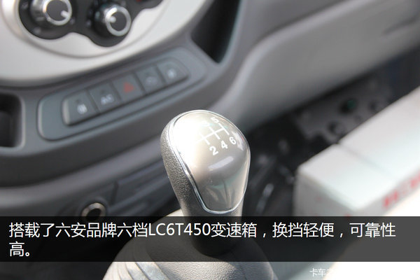 变速箱配备的是六安品牌六档变速箱,这在目前国内蓝牌轻卡上也是比较常见的。