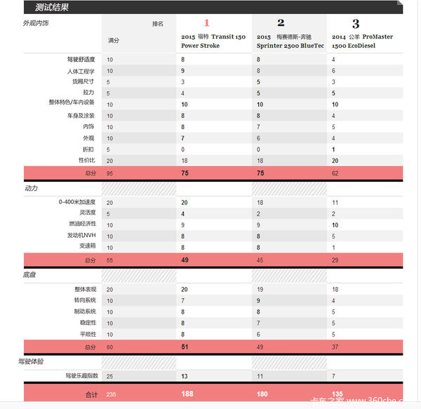 第4页:三款Van型车评测分数表