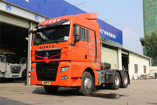 来卡车之家App【卡车之家 原创】重汽MC13L发动机马力段在480-540之间,是目前国产公路牵引车可搭载的发动机中马力最大的,重汽T7H及C7H均有车型使用了这款发动机。那么到底什么样用户才需要用到这么大马力的车呢?近日广东佛山市就有用户订购了一台540马力6X4驱动的C7H,小编赶紧跑去见了见这位车主。目前这款车在广州威骏的报价为45.8万。