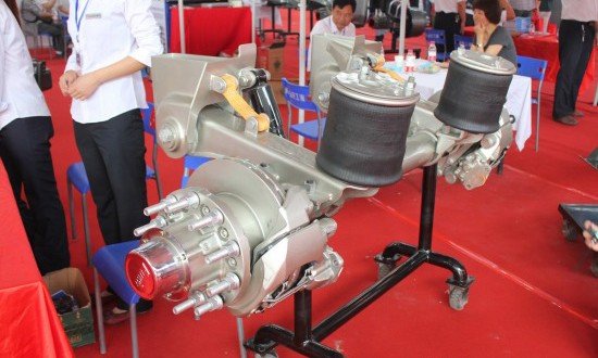 这种悬架普通半挂车上用的较少,主要用在重型车上。