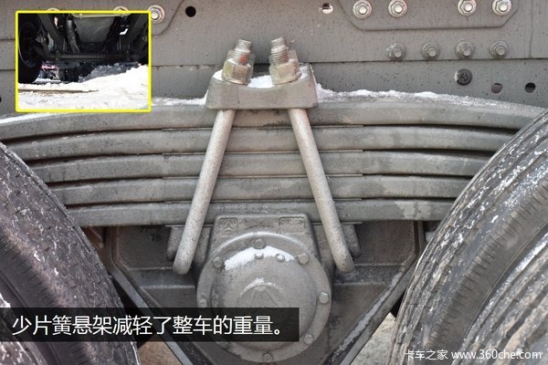 对于现在卡友都很关心的轻量化问题,这款车也做出了很好的响应,首先是它的自重仅为8.8吨,它的少片簧悬架减轻了整车的重量,另外该款车型采用铝合金油箱、铝合金储气筒等配置也减轻了自重,使其达到了轻量化。