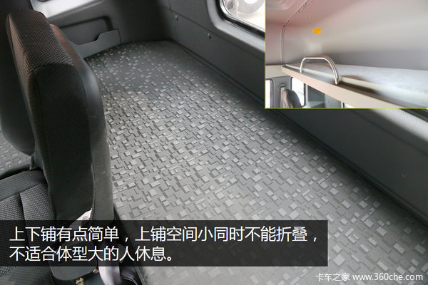 下铺空间能满足日常生活休息,但上铺空间小而且不能折叠,不适宜比较胖的司机休息。