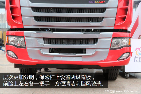 前脸层次更加分明,保险杠上设置两级踏板,同时前脸上左右各一把手,方便清洁前挡风玻璃。
