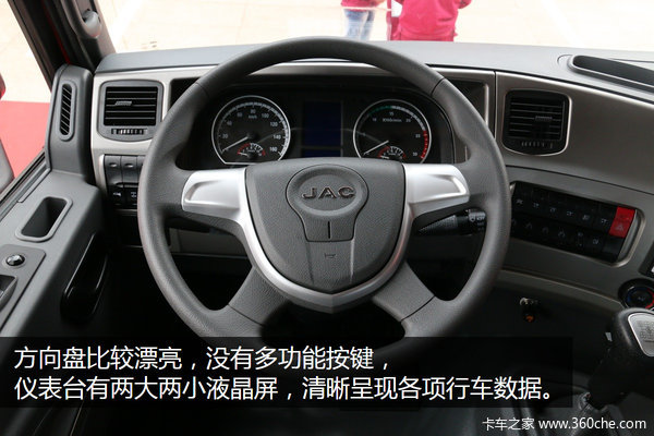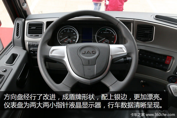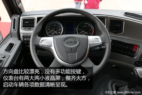 这款车沿用K3w驾驶室,在内饰里更加注重细节修改,提高舒适性。动力上搭配一汽锡柴350马力国五发动机,最大扭矩1500N.m,后桥速比3.083,整车的动力配备适合在平原地带轻载运输。