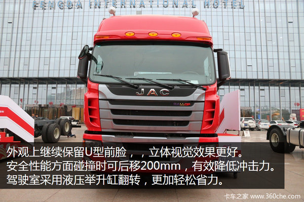 外观上继续保留U型前脸,细节上突出曲线设计效果,立体视觉效果更好。安全性能方面碰撞时驾驶室可后移200mm,有效降低冲击力。整体的设计更加注重细节,人性化。
