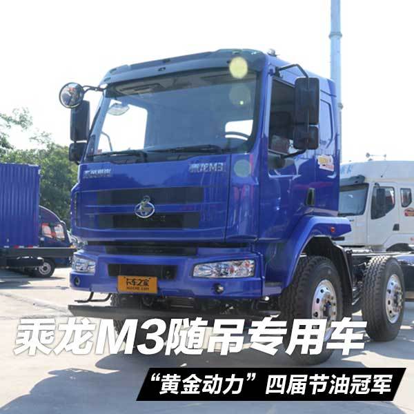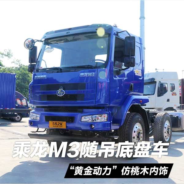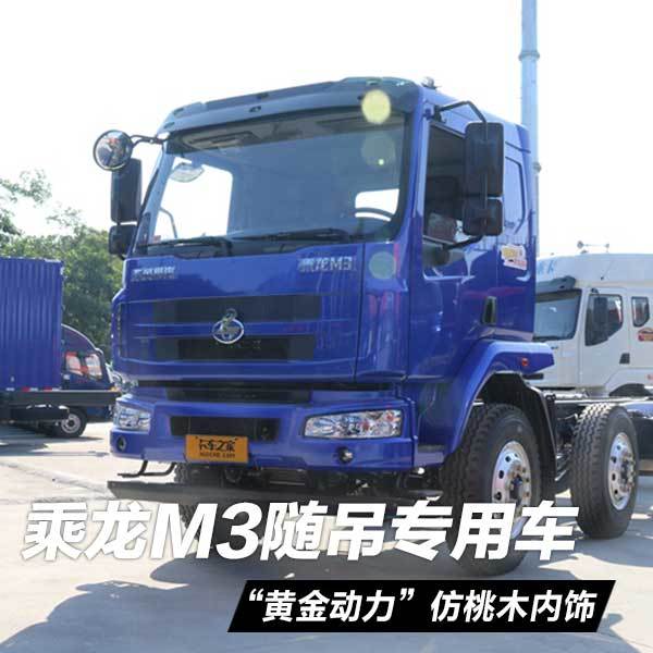 这款车的驾驶楼外观采用了深蓝色的涂装,给人一种醒目而又稳重的感觉。车前盖使用了粗条状的进气格栅,中间带有企业标致,左上方带有明显的乘龙M3标志。