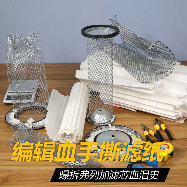 另外提醒大家需要注意的是,由于铁网非常锋利,建议在拆解时要带上手套,做好防护工作,这是编辑有血有泪的经验,因为在拆解过程中我的手掌不幸被划伤。经过几分钟的慢工细活,终于把铁网全部拆解出来,经过测量,铁网的净重为0.5千克,约占滤芯总重量的1/5。