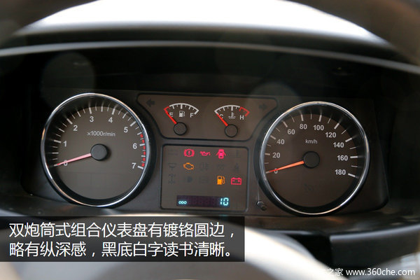 双炮筒式组合仪表盘有镀铬圆边,略有纵深感,黑底白字读书清晰。中控台包括音响系统、冷暖空调、点烟器等功能,音响系统按键大小适中。新款空调面板四周有镀铬装饰,三旋钮旋转阻尼较大。