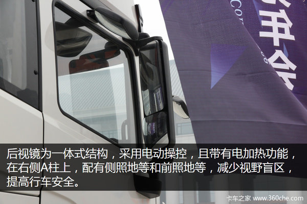 后视镜为一体式结构,采用电动操控,带有电加热功能,下雨和下雪时可快速烤干镜面上的水珠或积雪,保证视野清晰影,在右侧A柱上,配有侧照地镜和前照地镜,减少视野盲区,提高行车安全。