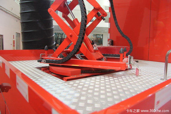 在车的侧面安装了三阶式的台阶,能方便快捷的上下平台;此外在上装部分还安装有爬梯以及固定的扶手,消防员能够更安全的上车顶拆卸照明灯。