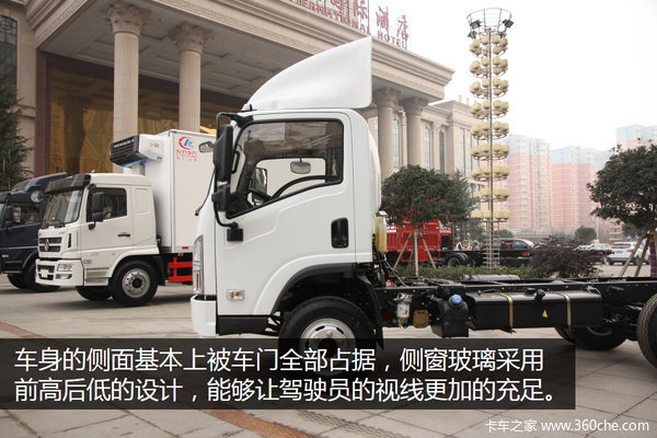 车身的侧面基本上被车门全部占据,侧窗玻璃采用前低后高的设计,能够让驾驶员的视线更加的充足。车门上S形的线条增加了车门钣金的强度,也更加的美观,下面的转向灯可以让车身侧面的车辆和行人了解驾驶意图,提前躲避增加行车安全。装配工艺方面非常的讲究,车门和车身缝隙大小基本一致。驾驶室后方的鼓包,将驾驶室的内部空间进一步增加,车内座椅可以进行更大范围的调节,司机在根据自己的驾驶习惯调节座椅的时候有更多的选择。