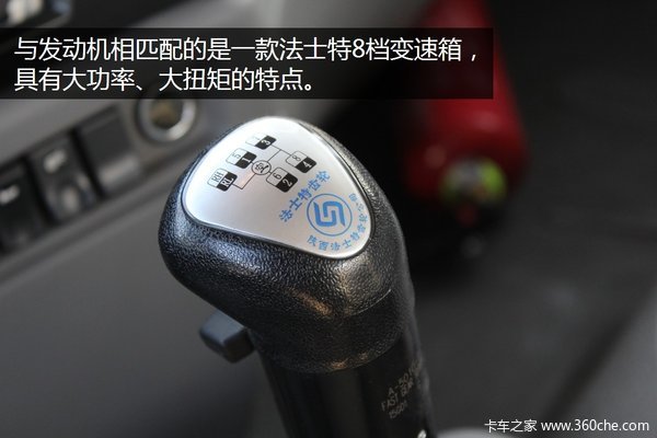 与发动机相匹配的是一款法士特8档变速箱,具有能够承受发动机大功率、大扭矩输入,保持车速平稳的特点。