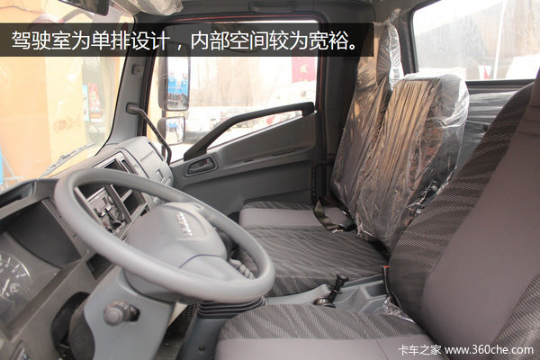 这款底盘专门为厢式货车选装了导流罩,导流罩的应用既可以使车辆整体更加美观又能减小风阻。前挡风玻璃配有浅色遮阳板,在司机逆光行驶时可以减少阳光对司机眼部的照射,提高行车安全。
