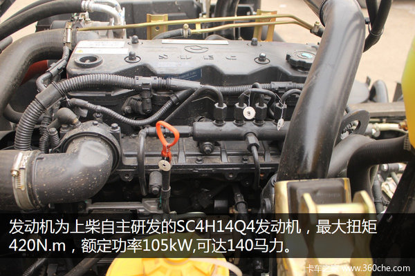 超越C500的发动机可以选装依维柯合资的索菲姆技术发动机及上柴自主研发的SC4H14Q4发动机,两款发动机各有优点。这次实拍的车型匹配的就是上柴自主研发的发动机,这款发动机排量达到了4.3升与之相比的索菲姆发动机只有2.8升,在轻卡领域如此大排量的发动机并不多见。