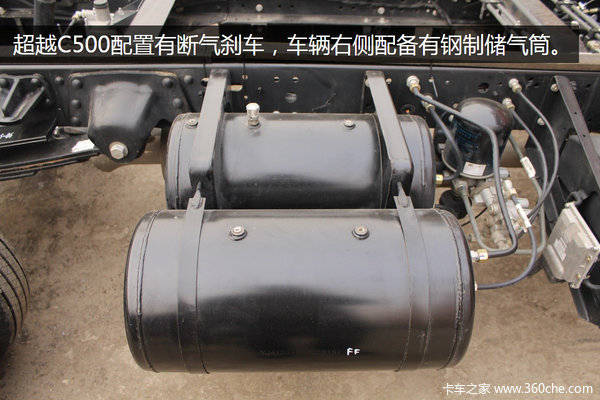 超越C500整车配有断气刹及排气制动,断气刹可以让驻车制动更加牢靠,排气制动可以减少日常刹车的使用,从而减少蹄片磨损,大大降低蹄片连续制动过热导致的行车安全风险。