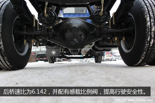 后桥速比为6.142,并配有感载比例阀,可以根据车辆的载重调整气压制动的压力,实现更可靠的制动。