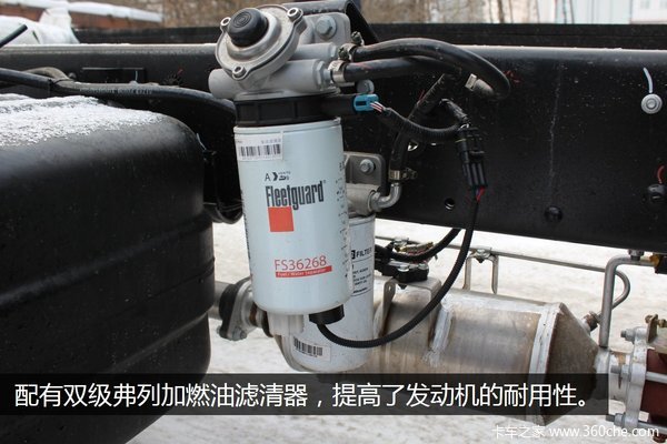 奥铃TX科技版配有双级弗列加燃油滤清器,提高了油品过滤的效率,有效地防止燃油中的水分和杂质对发动机造成伤害。