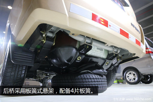 后桥采用板簧式悬架,配备4片板簧。轮胎采用玲珑牌的165/70R13的钢丝胎,大品牌+子午胎,更加可靠的同时也可增强整车的承载力。
