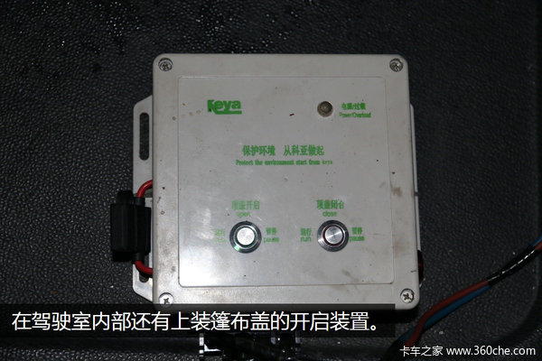 另外在驾驶室内部配备了货箱上面的篷布开启/封闭电控盒,操作起来方便。