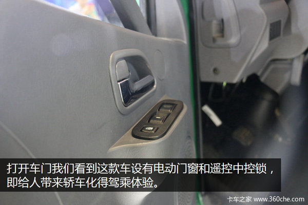 我们还是将重点放到驾驶室和底盘方面。打开车门我们看到这款车设有电动门窗和遥控中控锁,即给人带来轿车化的驾乘体验。