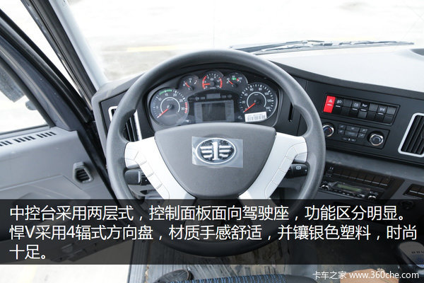 中控台采用两层式,控制面板面向驾驶座,功能区分明显。悍V采用4辐式方向盘,材质手感舒适,并镶银色塑料条,显得非常时尚靓丽。