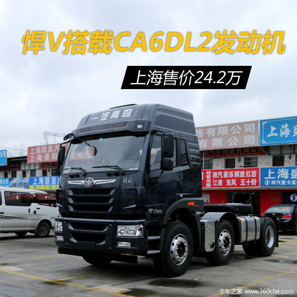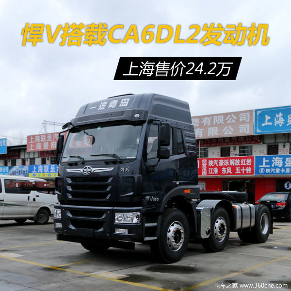 来卡车之家App【卡车之家 原创】2015年青岛解放全系产品切换成V系列,其中悍V是轻量化产品,更是青岛解放2016年主打产品。相比新悍威,悍V外观更加美观,自重更轻,驾驶舒适度也更高,深受上海零担散户的喜爱。近日,小编从上海德隆汽车销售服务公司获知悍V 6X2 350马力牵引车在上海目前售价为24.2万。