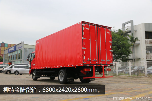 柳特金陆货箱长6800mm。该车配备了250L升铁质油箱,加满油续航里程可观。车身的两侧和后面都装有下防钻入护栏,防止外来车辆钻入车底的同时也保护了底盘的设备免遭刮蹭。