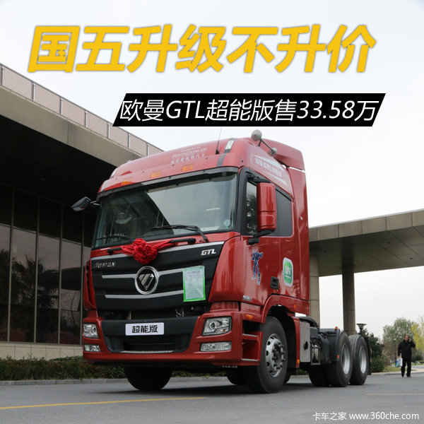 来卡车之家App【卡车之家 原创】2016年4月1日起我国东部11省市将实行国五排放标准,面对国五市场需求北京福田研发并推出了欧曼GTL超能版,还承诺升级不升价。近日,小编从上海天佑汽车销售服务公司得到消息,欧曼GTL超能版已经到店销售,430马力6X4牵引车售价33.58万元。